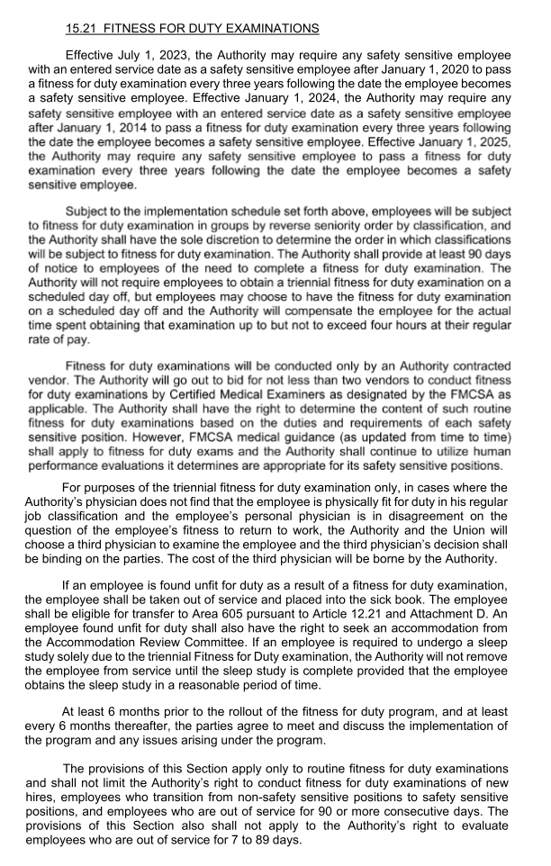 Essentially, this Article allows the CTA mismanagement to punish train operators—and other workers—for being overweight—or anything else they deem a liability to their bottom line. Thanks to the American Public Transit Association (APTA) for cooking up this anti-worker rubric. Learn more about this entire program from this seven page brochure at their website.