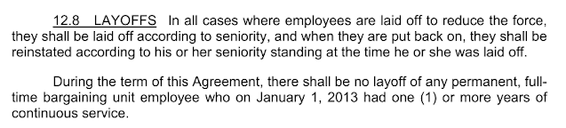 Once the layoffs begin, so will the "bumping" of jobs. That is explained in Article 12.8A: